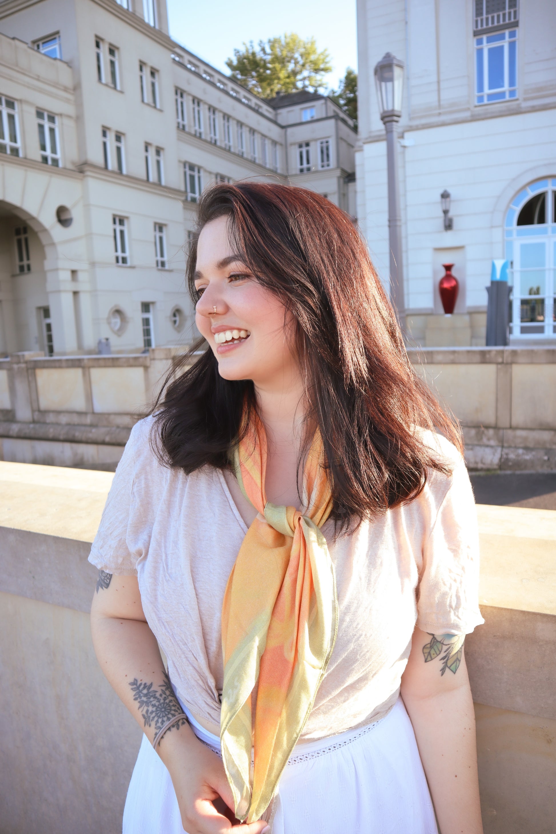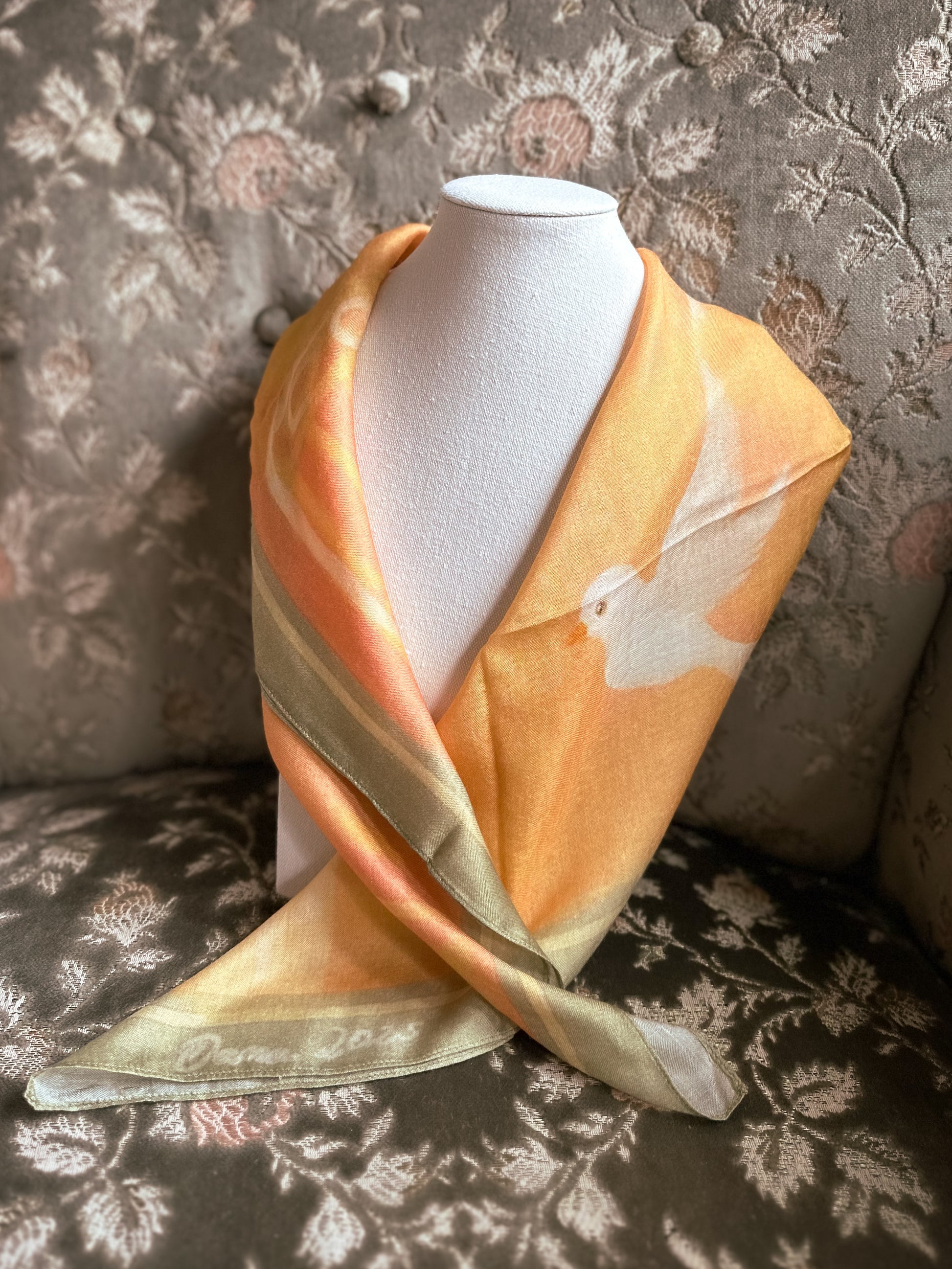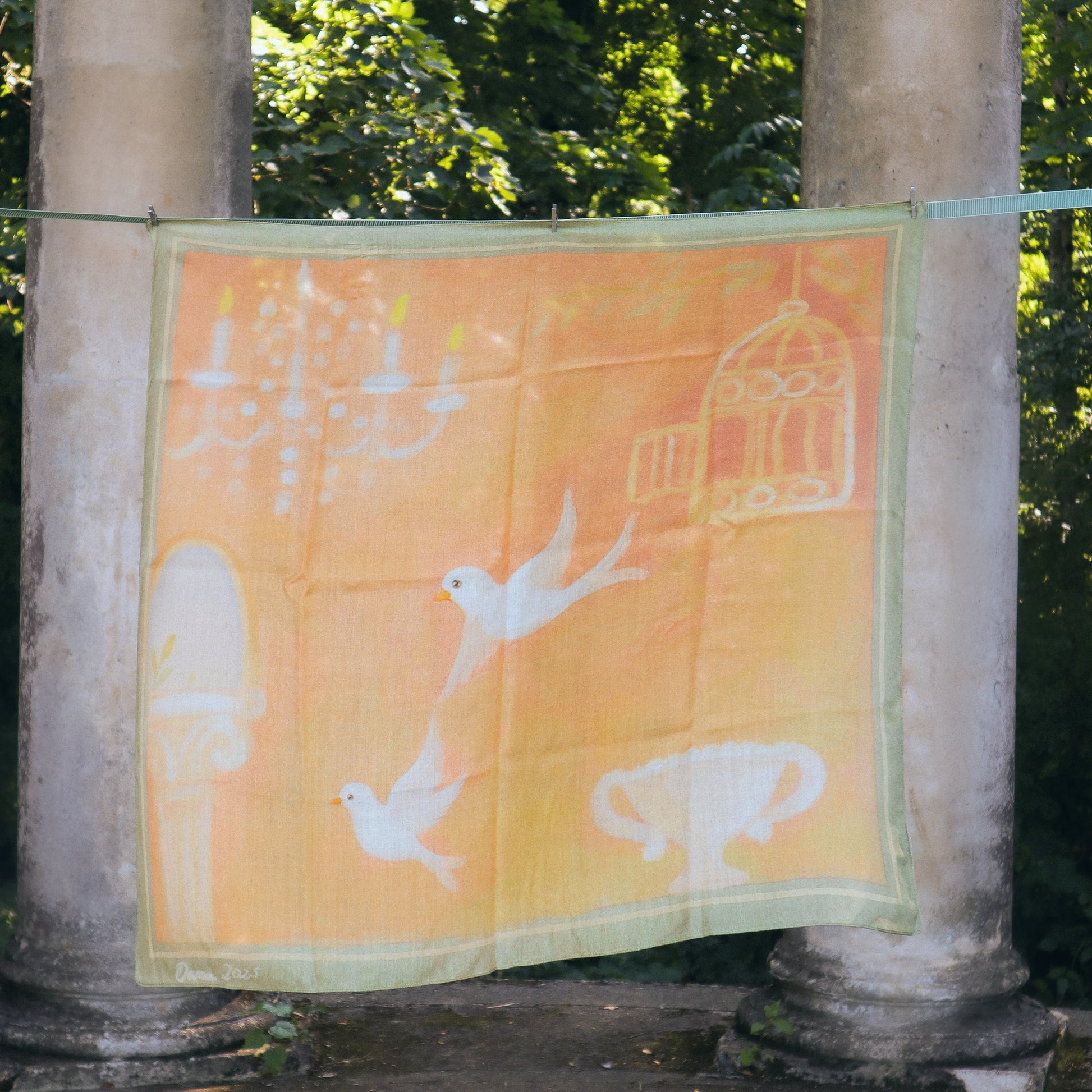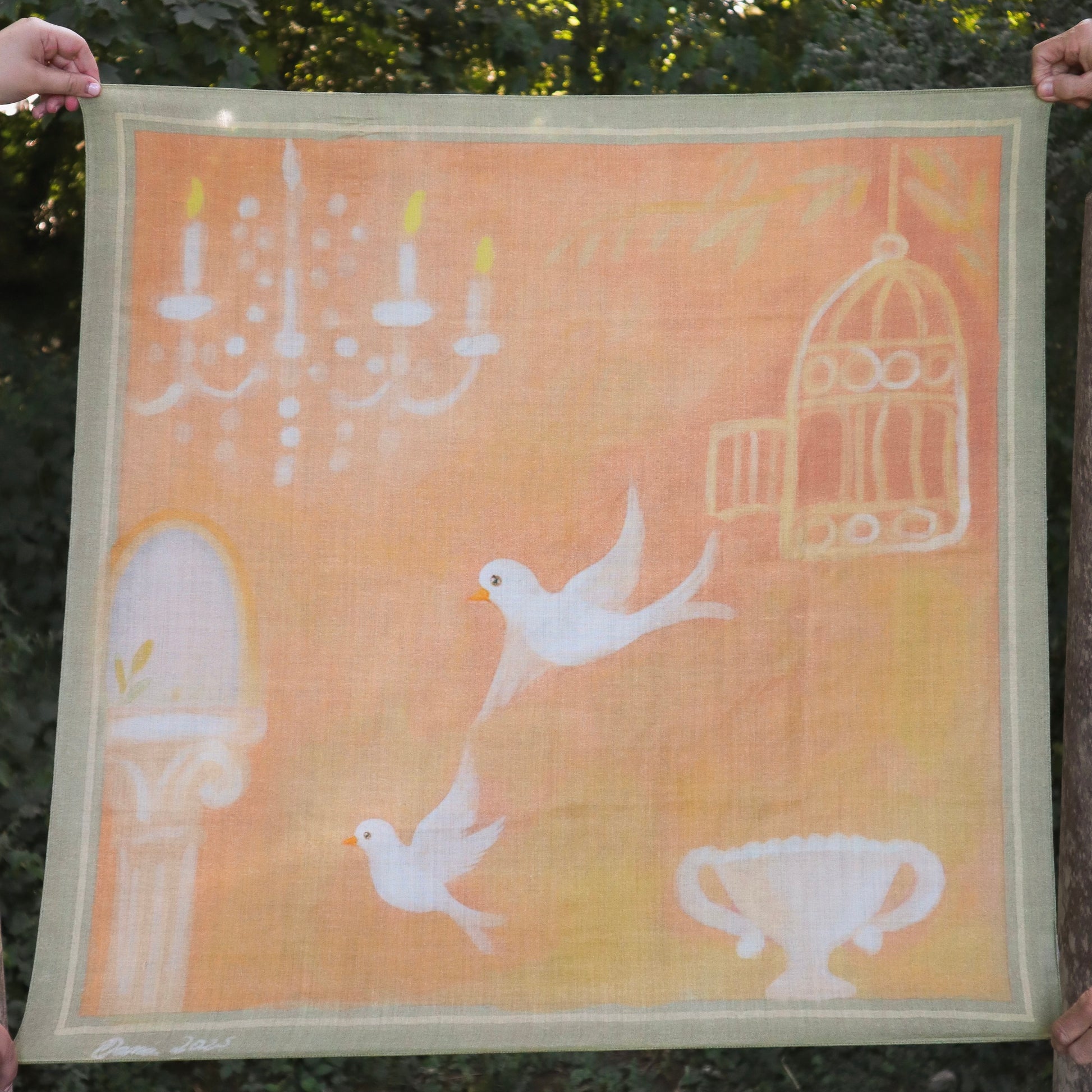 The Paloma scarf is a poetic and elegant piece, where doves in flight symbolize peace, freedom and love. Surrounded by graceful motifs that echo royal and italian refinement, its soft hues create a serene, timeless beauty—bringing a luxurious touch to your look.